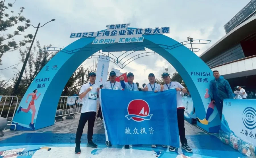 赛事主会场设置了丰富多彩的嘉年华互动区域和完赛服务,敏众集团的五员虎将历时两个半小时徒步走完全程,在终点举起敏众集团的旗帜,顺利完成此次众企同行、汇聚临港的比赛活动!