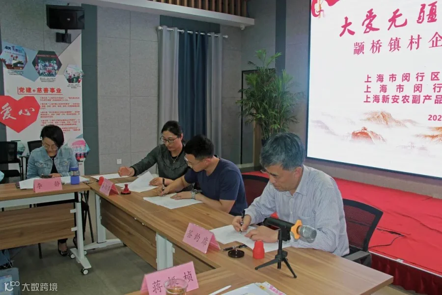 工会主席戴文俊和各村领导进行结对捐赠签约。