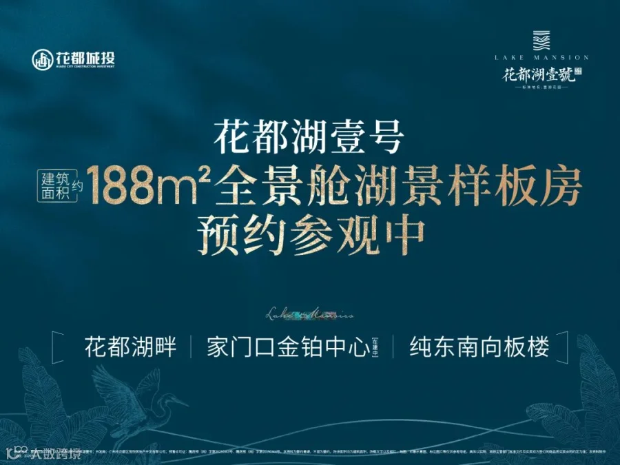 标准地名:壹湖花园;推广名:花都城投·花都湖壹号;开发商:广州市花都区恒悦房地产开发有限公司;预售许可证:穗房预(网)字第20250343号、穗房预(网)字第20250344号;本资料为要约邀请,不视为要约,所涉面积均为建筑面积,所载文字以及相片、地图、印象示意图、标注图片等仅供参考用途,具体以实物、政府主管部门批准文件及买卖双方签订的商品房买卖合同约定为准;本资料制作日期:2026年04月。