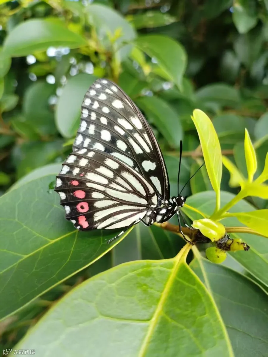 这只蝴蝶的特写像大自然的 “刺绣作品”—— 黑底白纹衬着艳红斑点,连翅膀肌理都清透鲜活,把夏日灵动感稳稳锁进了镜头里。