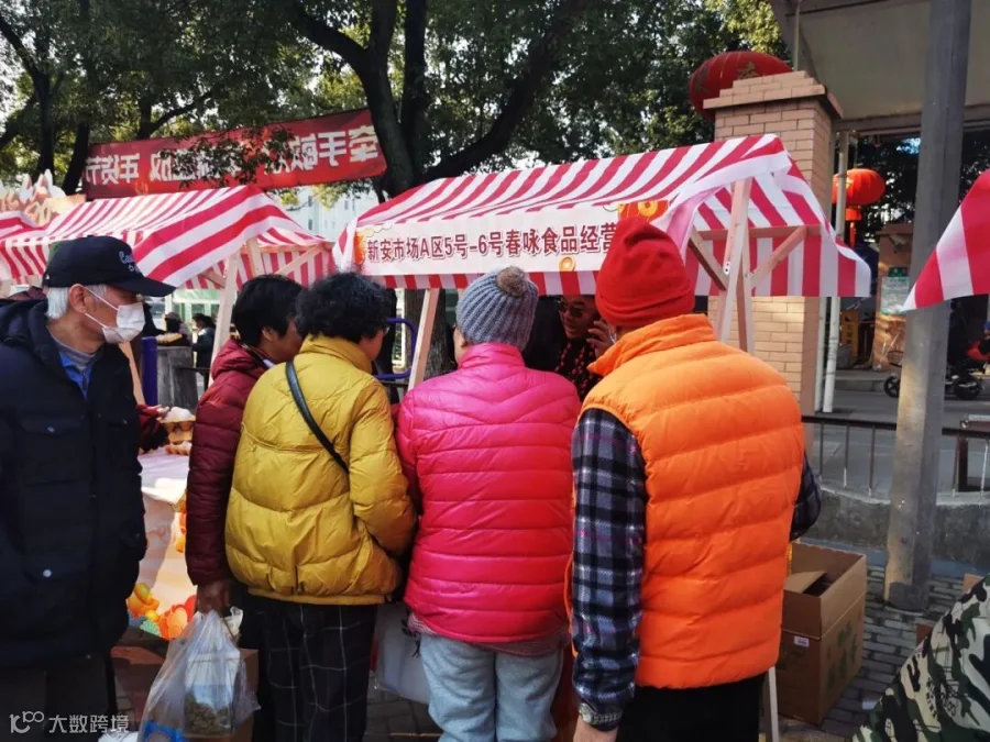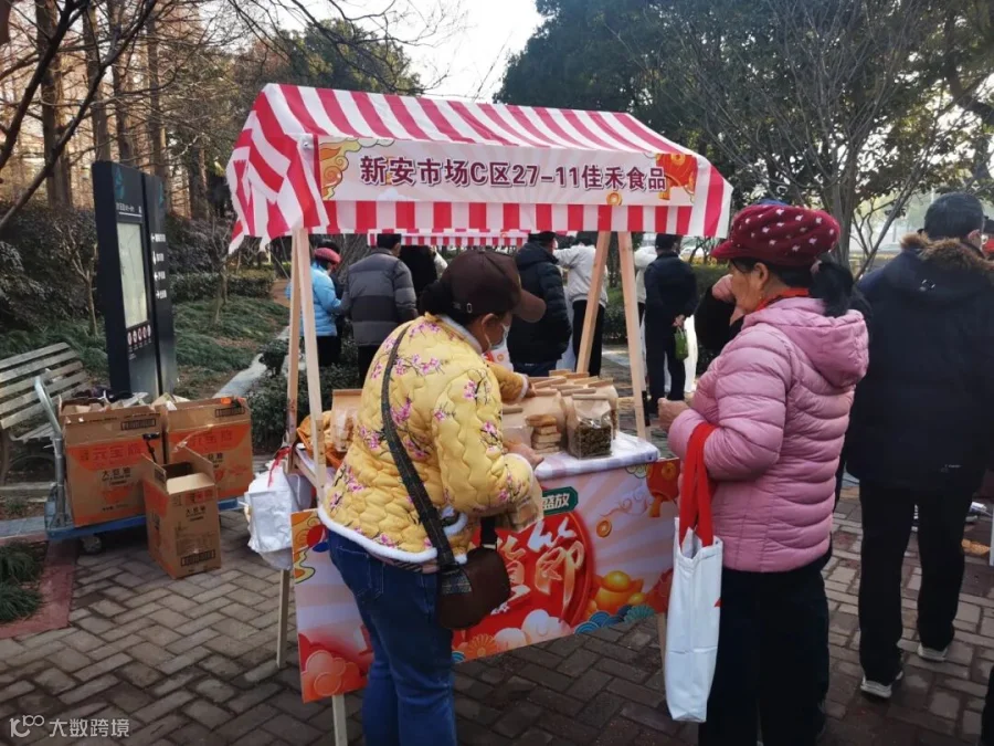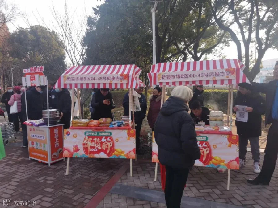 来自新安市场的凤俊冻品和春咏食品为居民们带来了腊味年货、速冻点心、禽蛋等商品,并提供了贴心的打包服务。