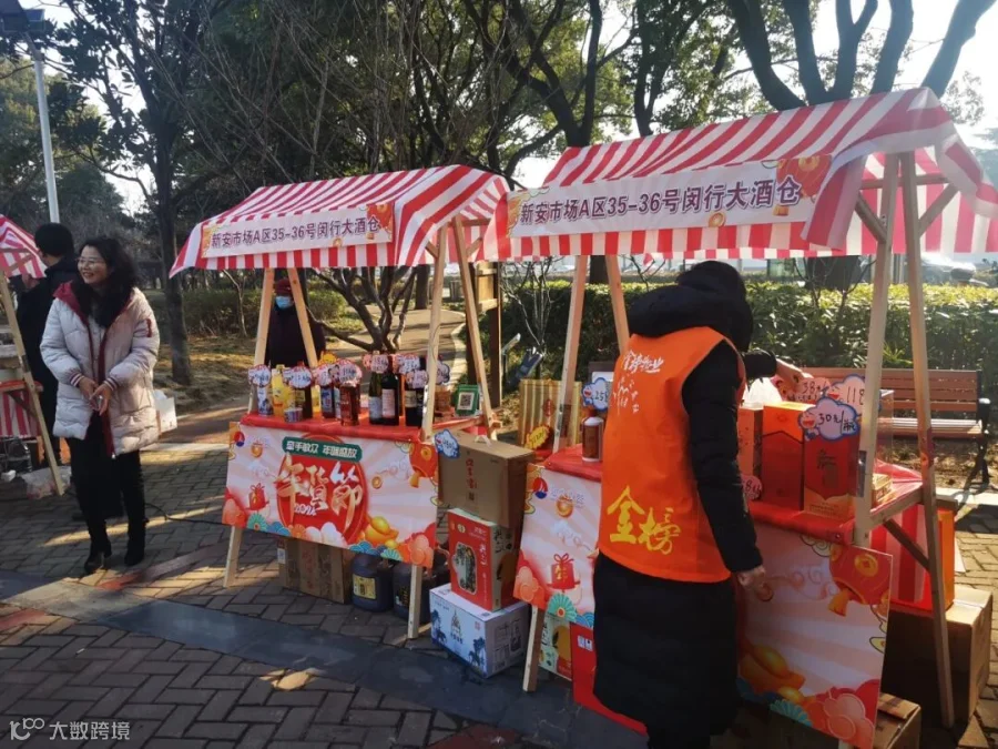 来自新安市场的闵行大酒仓摊位上摆满了来自世界各地的酒类礼盒,让居民们在家门口就能选购满意的酒水;