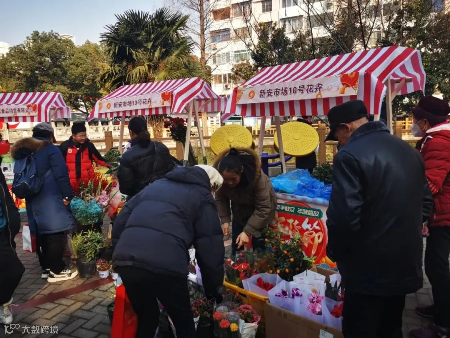 本次年货节汇集了15个摊位,分别来自新安市场的花卉区10号、B区44-45号凤俊冻品、A区35-36号闵行大酒仓、A区5-6号春咏食品、C区27-11佳禾食品、E区36号山西红富士专卖、G区16号冠珠食品、以及安宁市集1331双美中心和闵行老年书画社。