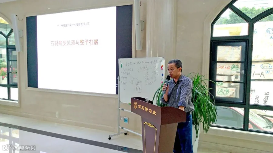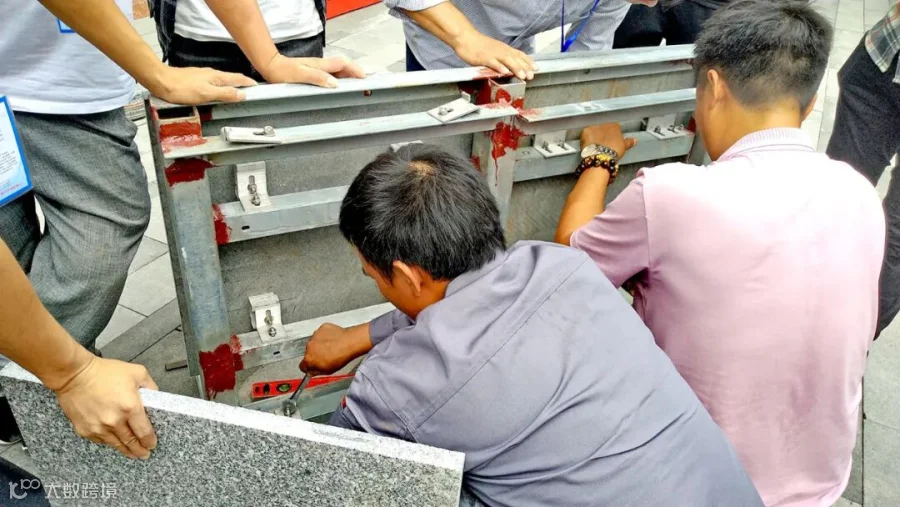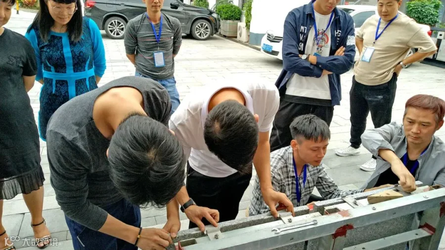 2、石材干挂技术演示;石材晶面抛光的方法和流程;石材放样测量。