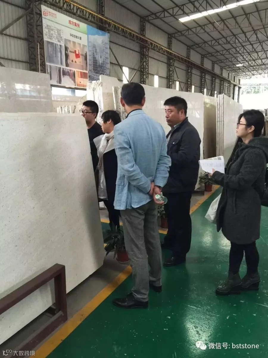 业务部经理、技术部经理和生产部主要领导以及董事长向伟先生共同接待了前来考察的领导。业务部经理带领导参观了选材中心,并向参观领导详细介绍了酒店所选石材的特点。针对领导提出的疑问和要求,业务部经理和技术部经理一一解答并记录下来。