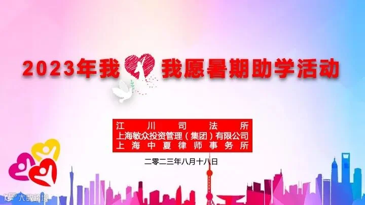 本次“我心我愿”暑期助学活动由江川司法所主办,爱心企业上海敏众投资管理(集团)有限公司、上海中夏律师事务所鼎力支持并出席活动。