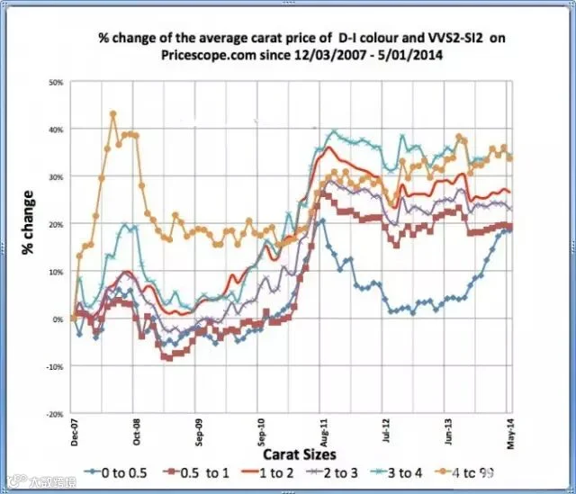 尽管2008年全球遭遇金融危机,但钻石价格仍然稳步上涨,目前已经达到8100美元。