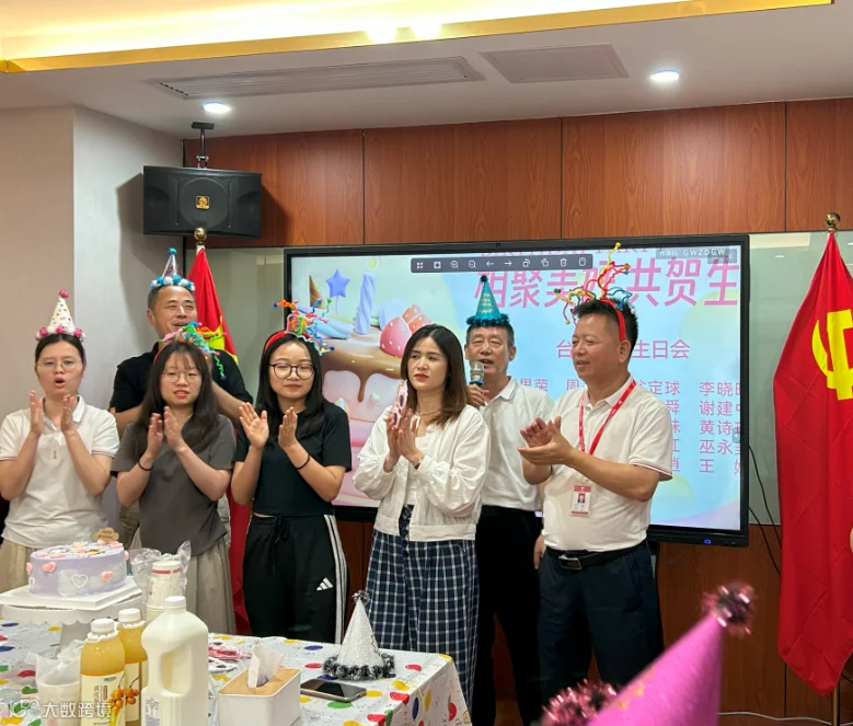 当蝉鸣与热浪交织成夏日序曲,一场充满仪式感的欢聚正在上演。7月4日,台实夏季员工生日会在公司大会议室开展,寿星们暂别忙碌的工作,在欢笑与祝福中共同解锁专属幸福时刻。本次生日会还特别邀请到两位客户莅临现场,共同见证这场充满爱与关怀的活动。