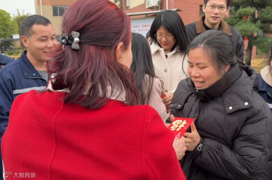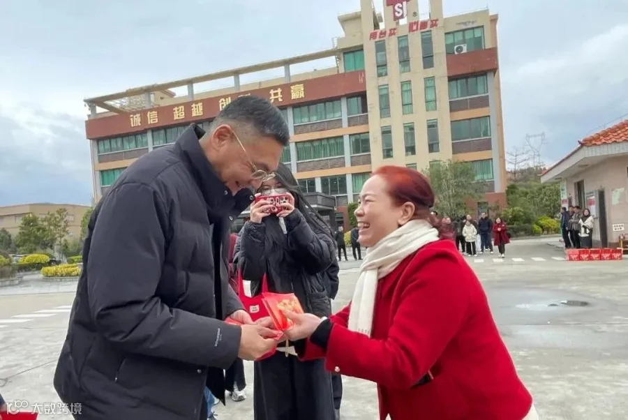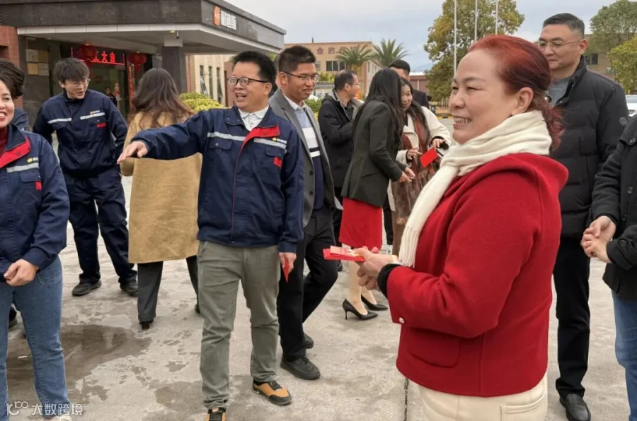 台实陈副总为每一位员工发放开工红包并送上新年祝福。一张张承载着满满心意的红包,传递着公司对员工的感谢与鼓励,寓意着新的一年里大家都能红红火火,事业高升。