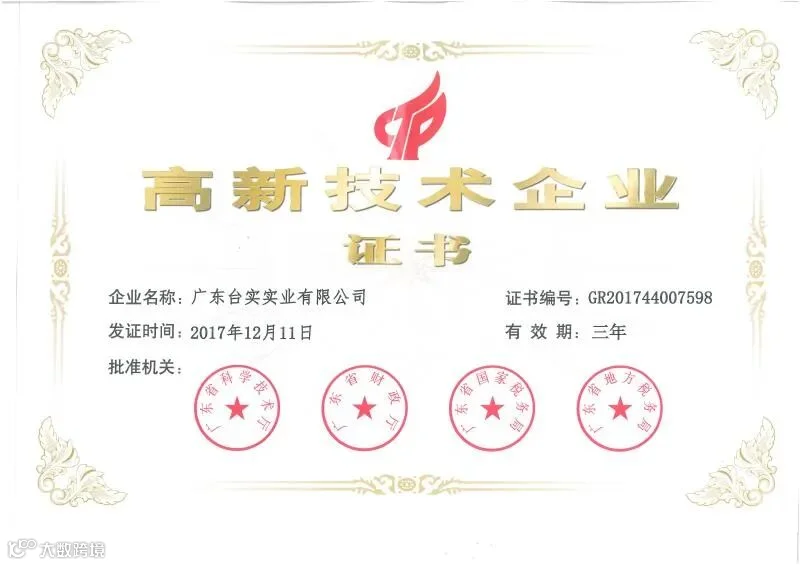 此次高新技术产品荣誉的获得,标志着台实的自主创新能力、核心竞争力又大大向前迈进了一步。这是对台实科研成果及科技创新的又一权威认可,再次彰显了我司的科技实力及持续创新能力。