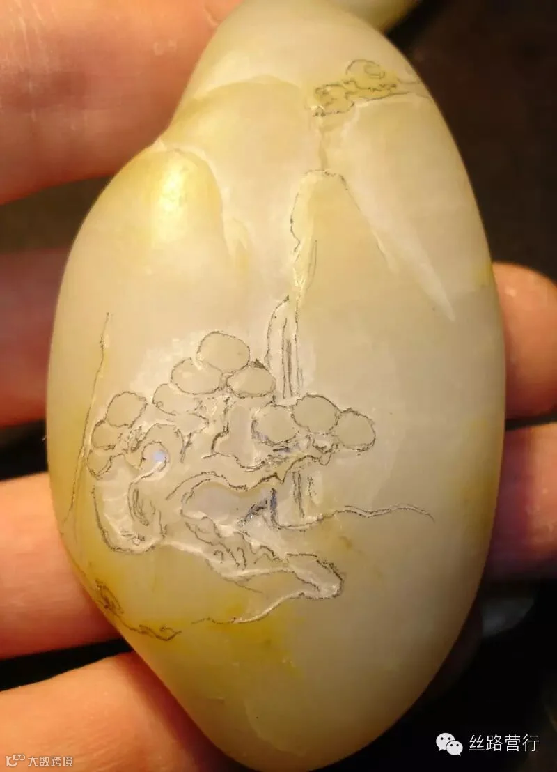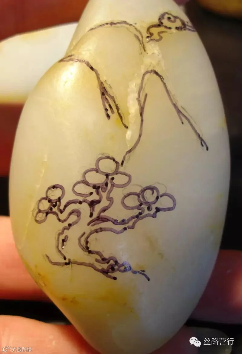 !玉雕离不了水,要选用不怕水的油性笔,或着以防水的虫胶液罩一下。但二者千万别一起上啊!