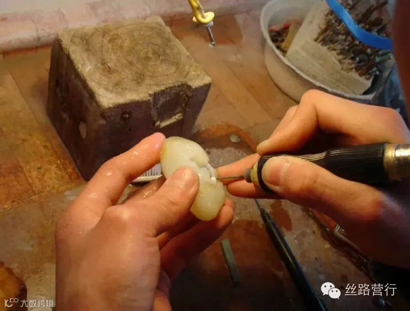 玉雕的工具与牙医用的钻牙工具材质相同。其实在大小及种类上还是有区别的,玉雕工具要丰富得多。各种形状的不同尺寸加在一起估计不下几百种。