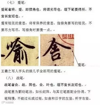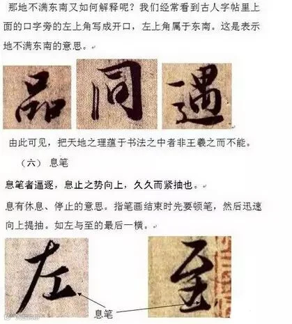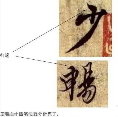 王羲之精研体势,心摹手追,广采众长,备精诸体,冶于一炉,摆脱了汉魏笔风,自成一家,影响深远。其书法平和自然,笔势委婉含蓄,遒美健秀,也正因此,王羲之给后人留下了大量的书法笔法精华。主要表现在14条
