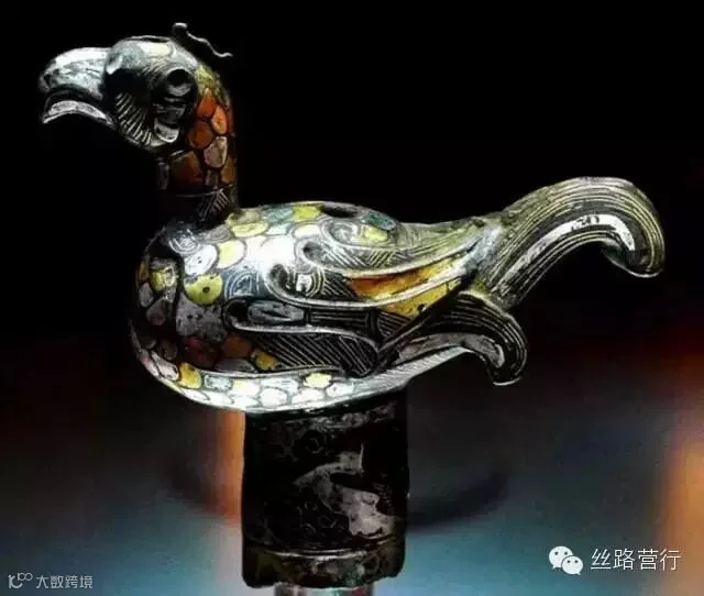 青铜金银错 孔雀杖首