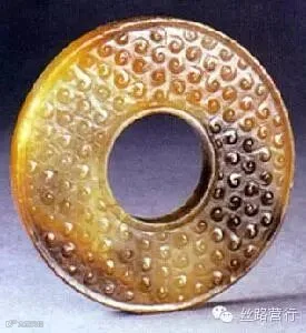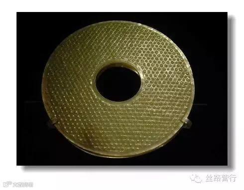 4、蒲纹: 成排密集排列的六角形格子纹饰。常见于战国秦汉时期的玉璧上。