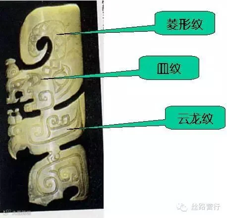 双阴线、菱形纹、皿纹、云龙纹 商代 龙鸟佩
