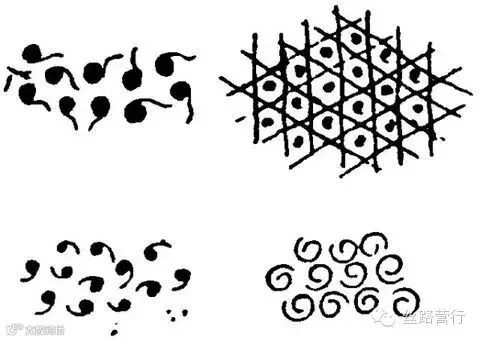 1、谷纹 :整齐排列的蝌蚪状纹饰,象谷牙。流行于战国秦汉。