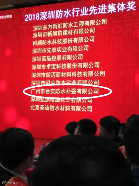 台实防水扎根广东,辐射全国,作为深圳防水行业协会副会长单位,一直积极支持配合协会的各项工作。在此次深圳防水行业协会年会上,因台实防水在防水材料,防水施工和渗漏治理方面追求科技创新和技术进步中表现突出,荣获协会颁发的“2018深圳防水行业先进集体”奖。另外,台实防水重大项目部经理彭良进、工程中心项目经理江南获2018深圳防水行业先进个人”奖项。