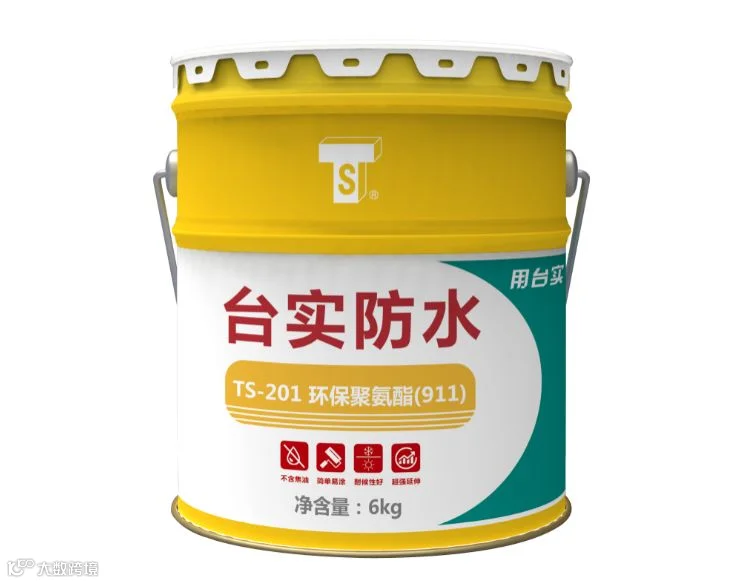 TS-201环保聚氨酯防水涂料(911),是由异氰酸酯和聚醚多元醇反应而成的聚氨酯预聚体A组份和含有防老剂、硫化剂、交联剂等多种助剂反应而成的B组份组成;使用时,按一定比例混合,固化后形成整体富有弹性的高分子防水涂膜。