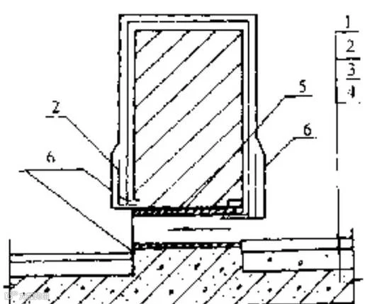 过水洞周围的混凝土应浇捣密实,过水洞宜用完好、无接头的预埋管,管两端头应突出反挑梁侧面10mm,并留设20mm×20mm的槽,用柔性密封膏嵌填,过水洞及周围的防水层应完整,无破损,粘结要牢固,过水洞畅通。见图1。