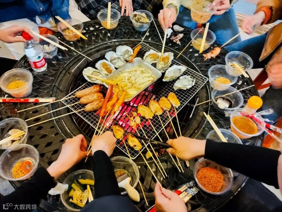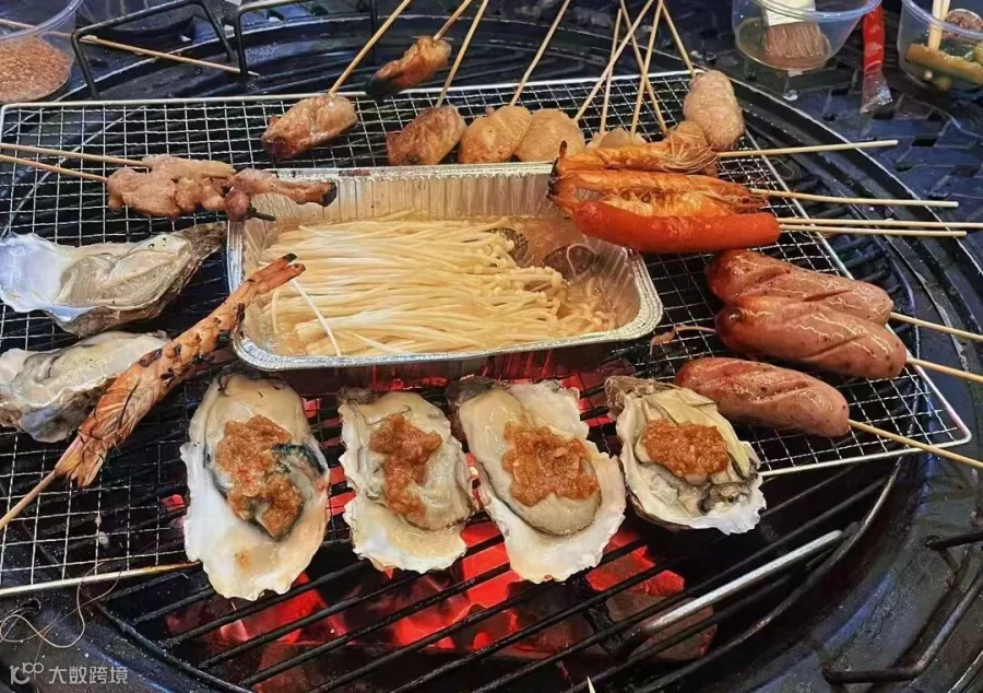 烤架上滋滋冒油的食材香气四溢,与欢快的谈笑声交织在一起,构成一幅温馨和谐的画面。但人的悲喜并不相通,有人捏着黑如焦炭的牛肉串无奈叹气,四处寻求投喂;有人玩转6排肉串,烧烤架势堪称美食综艺拍摄现场。