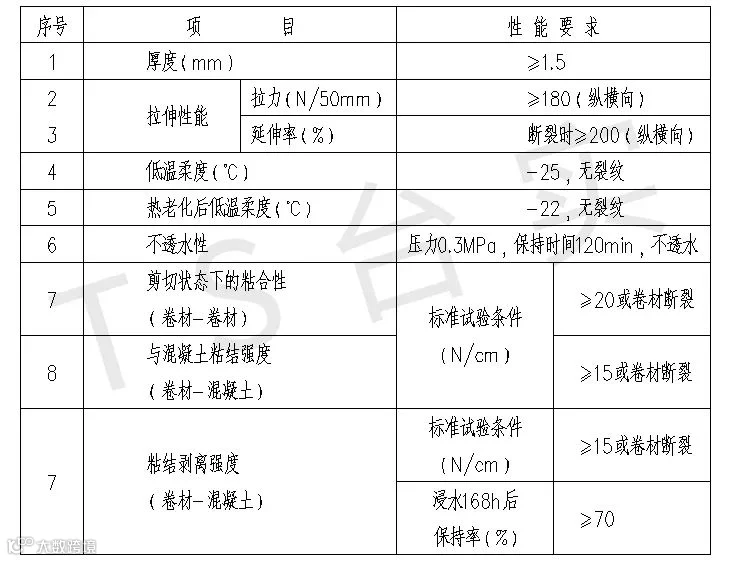 本工程在管廊底板底部采用SBS改性沥青防水卷材。其材料性能如下: