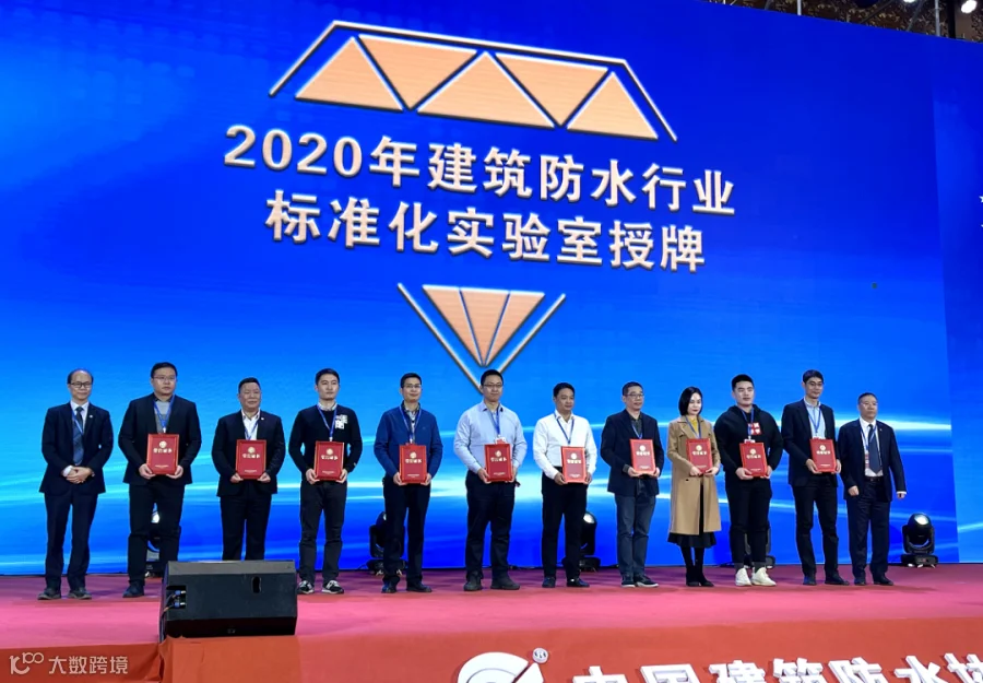 下午,大会举行了2020年度“建筑防水行业标准化实验室”颁奖仪式,中国建筑防水协会副会长吴经德宣读了表彰决定并进行了颁奖,台实凭借健全的质量管理体系、专业的质检团队和规范的试验场所及设备成功通过2020年度“建筑防水行业标准化实验室”评定,在获奖单位荣誉证书颁发仪式环节,台实运营部总监邓景峰代表公司领取了此项荣誉。