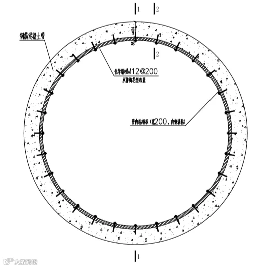│管道内粘钢板剖面图