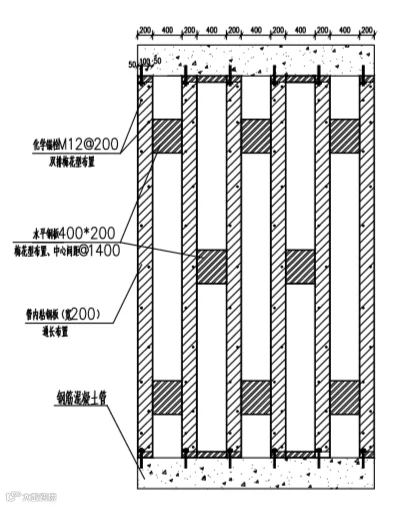 │管道内粘钢板立面图