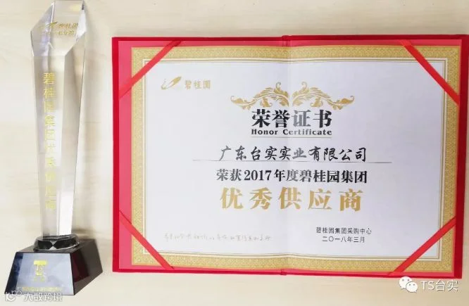 3月20日下午,碧桂园集团2018年度供应商大会在顺德总部隆重召开, 广东台实实业有限公司董事长邓思荣代表台实获颁碧桂园集团“2017年度碧桂园集团优秀供应商”奖。在与碧桂园地产的多次合作中,台实防水以稳定的产品质量、高效的施工效率得到了碧桂园高层的肯定,为台实品牌赢得了口碑!