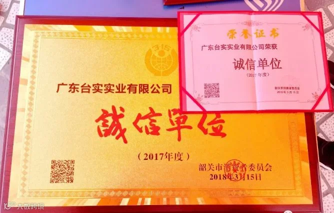 3月15日韶关市消委会联合韶关市工商局开展了主题 “品质消费、美好生活”的“3·15国际消费者权益日”宣传咨询活动。作为连续多年获得广州市颁发的“重合同守信用企业”称号的台实,应邀出席了此次活动,并荣获韶关市“2017年度诚信单位”证书和牌篇,这是韶关的消费者对台实的肯定,众望所归。
