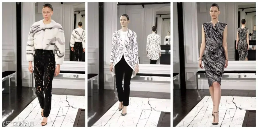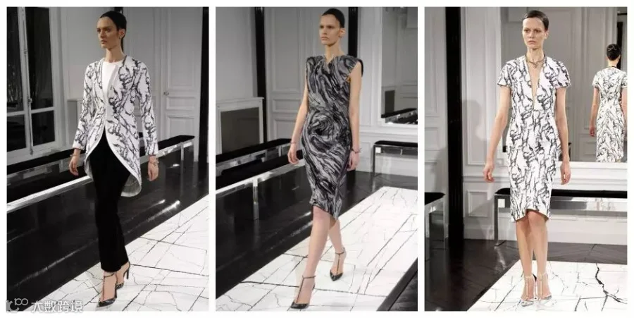 在Balenciaga的秀场上曾经出现过以大理石为主题的系列,这个时尚圈最具影响力的品牌之一,自从启用华裔设计师Alexander Wang担当设计总监后,大量使用了AW最钟爱的大理石元素,甚至连材质都模仿了,更别提这充满张扬撕裂质感的秀台了。