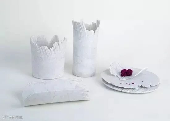 以色列设计师Shira Keret采用大理石材料制成的Monolith系列盘子和容器,刻画出独一无二的纹理特征。