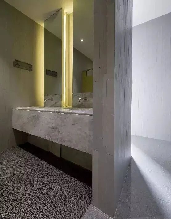 洗手间雅柏灰台面设计强调外形简洁,大气雍容的自然纹理,棱角分明。