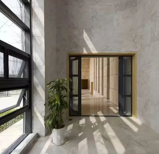 长廊过道,锦玉大理石循规蹈矩地交替铺陈,自浅到深的各个色阶元素层层跳跃,放大空间视感无限。