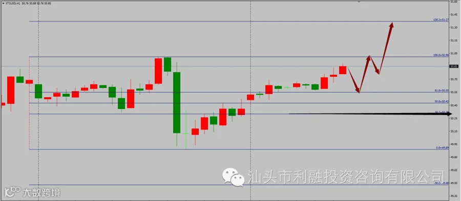 导读:今日的操作策略:等待价格回踩50.55一线附近轻仓做多,止损设于50.3之下,短线目标看50.96附近,到位