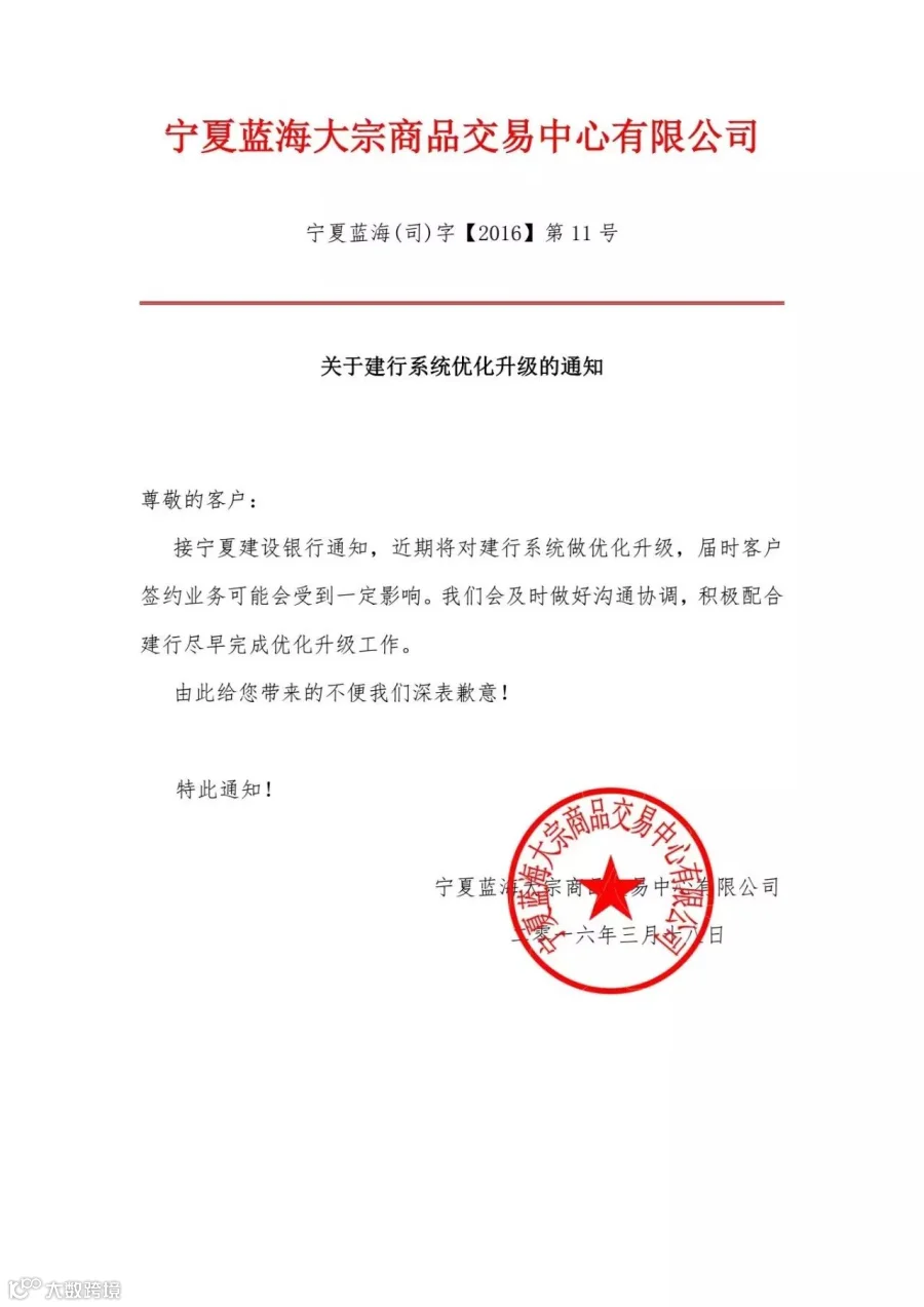 (请各位客户知悉)宁夏蓝海平台关于农行业务调整以及建行系统优化升级的通知