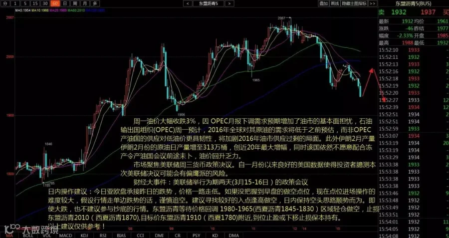 日内操作建议:今日亚欧盘承接昨日的跌势,价格一路走低。如果没把握到早盘的做空点位,现在点位进场操作的难度较大,假设行情走单边跌势的话,谨慎追空。建议寻找较好的入点逢高做空,日内保持空头思路顺势而为。即使大跌,也不建议参与抄底的行情。东盟沥青等待价格回调 1980-1965(西夏沥青1845-1830)区域轻仓做空,止损东盟沥青2010(西夏沥青1870),目标价东盟沥青1910(西夏1780)附近,到位止盈或下移止损保本持有。