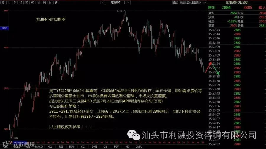2911~2917区域轻仓做空,止损设于2937之上,短线目标看2886附近,到位下移止损保本持有,止盈目标看2867~2854区域。