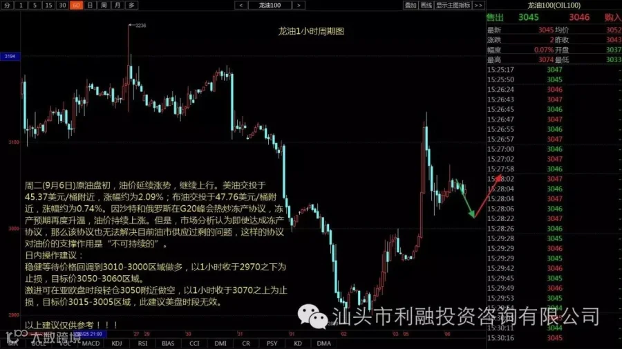 稳健等待价格回调到3010-3000区域做多,以1小时收于2970之下为止损,目标价3050-3060区域。