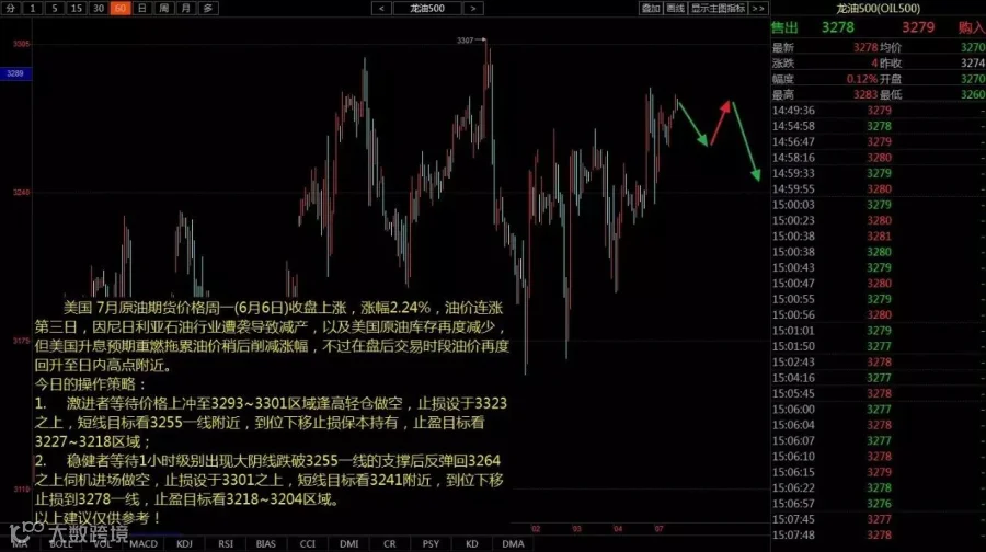 2、稳健者等待1小时级别出现大阴线跌破3255一线的支撑后反弹回3264之上伺机进场做空,止损设于3301之上,短线目标看3241附近,到位下移止损到3278一线,止盈目标看3218~3204区域。