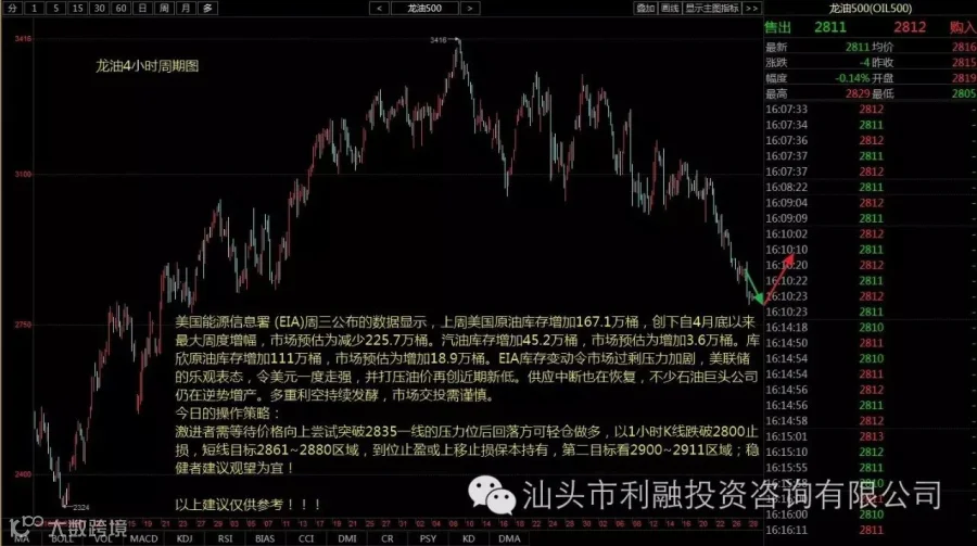 激进者需等待价格向上尝试突破2835一线的压力位后回落方可轻仓做多,以1小时K线跌破2800止损,短线目标2861~2880区域,到位止盈或上移止损保本持有,第二目标看2900~2911区域;稳健者建议观望为宜!