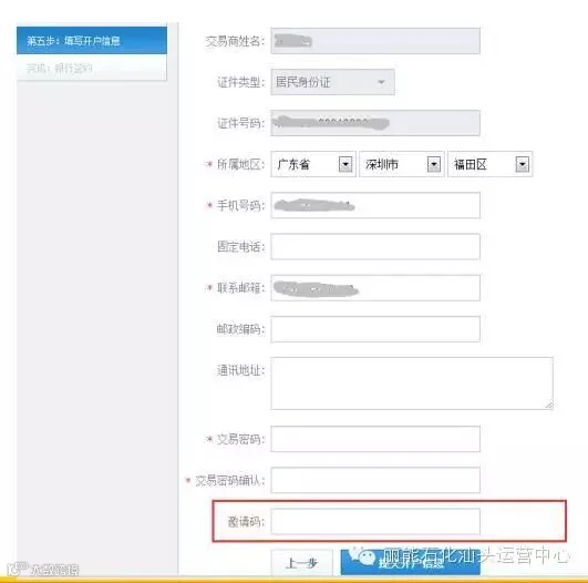 当您网上开户时,请注意在第五步:填写客户信息 中的“邀请码”