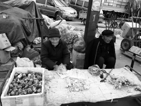 一位老妇人正在卖大蒜。包子铺此前免费的大蒜被要1头1元钱。