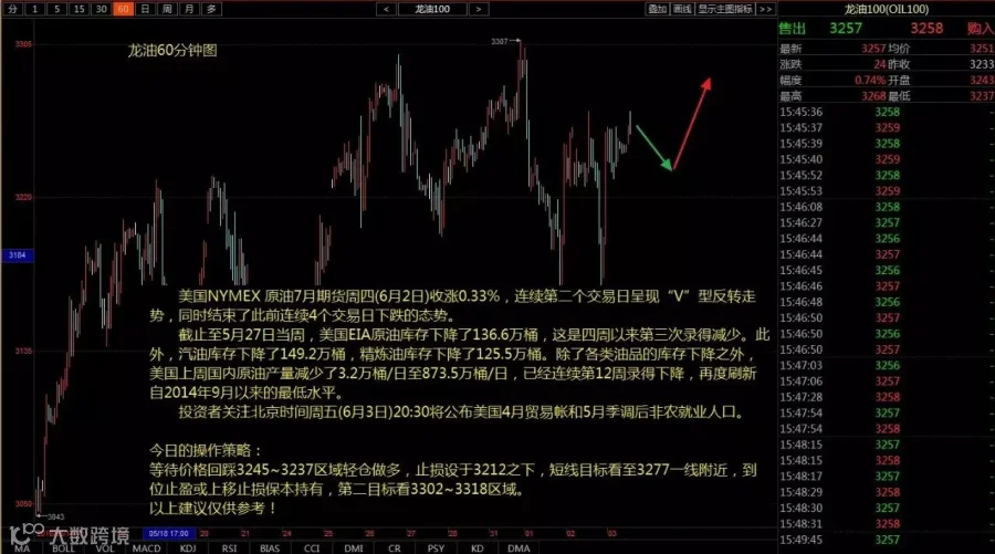 等待价格回踩3245~3237区域轻仓做多,止损设于3212之下,短线目标看至3277一线附近,到位止盈或上移止损保本持有,第二目标看3302~3318区域。