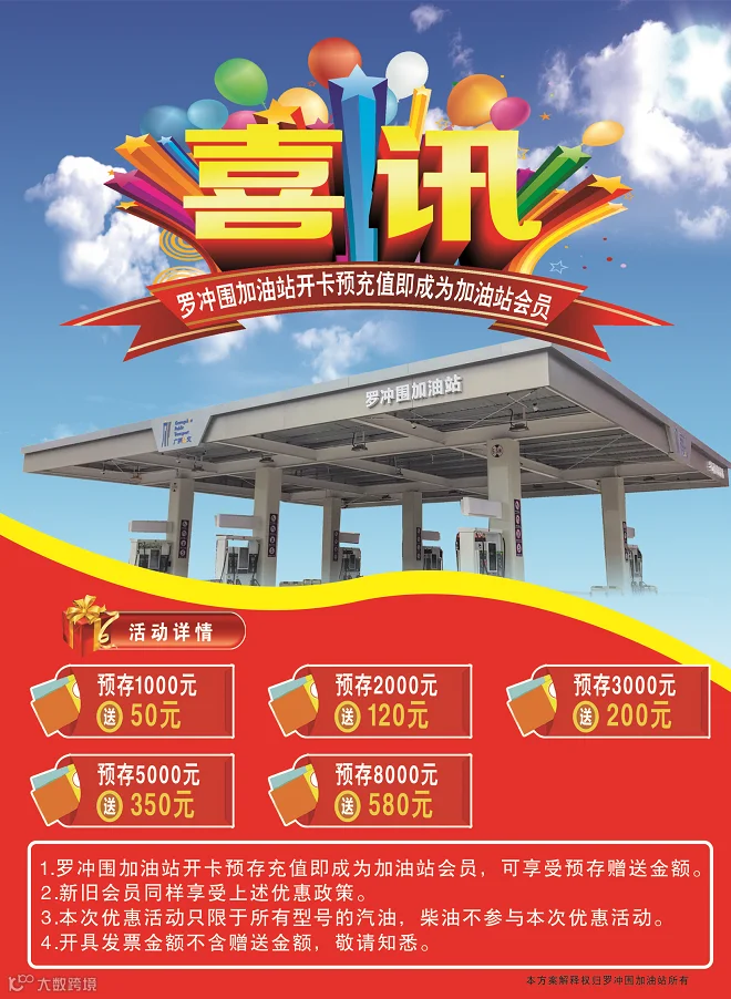 即日起至2021年5月31日,罗冲围加油站推出开卡送优惠活动(注:1.本次活动仅限于所有型号的汽油,柴油不参与活动;2.原会员同样适用本次活动;3.享受职工优惠则不再享受此优惠),活动期间凡在罗冲围加油站开卡预充值即成为加油站会员,即可享受