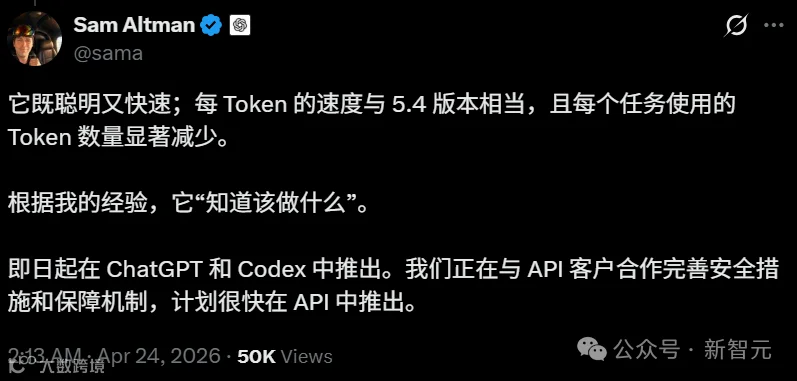 奥特曼忍不住大加赞赏,「GPT-5.5既聪明又快速」。