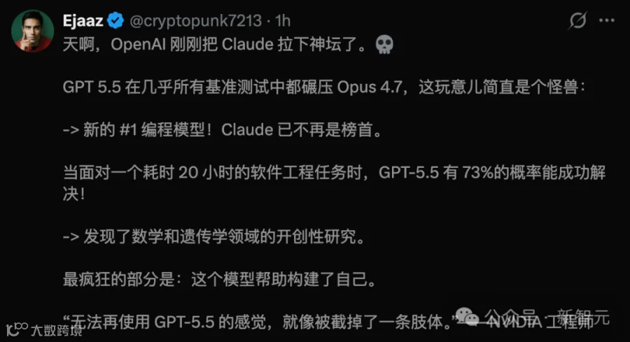 4月24日,GPT-5.5正式发布。Terminal-Bench碾压,定价翻倍,科研炸裂。