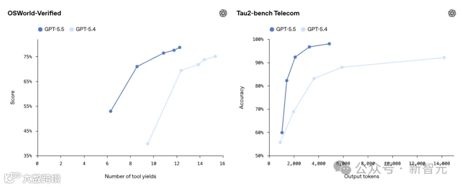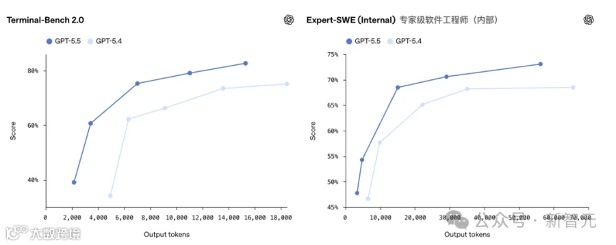 OpenAI给出的解释是token效率提升。同样的Codex任务,GPT-5.5用的token比GPT-5.4明显更少。