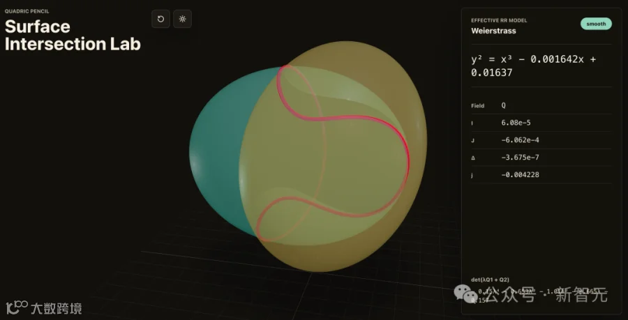 波兹南·密茨凯维奇大学数学助教Bartosz Naskręcki在Codex中,仅用11分钟就从一个单一提示词构建了一个代数几何应用,可视化了二次曲面的交集,并将生成的曲线转换为Weierstrass模型。
